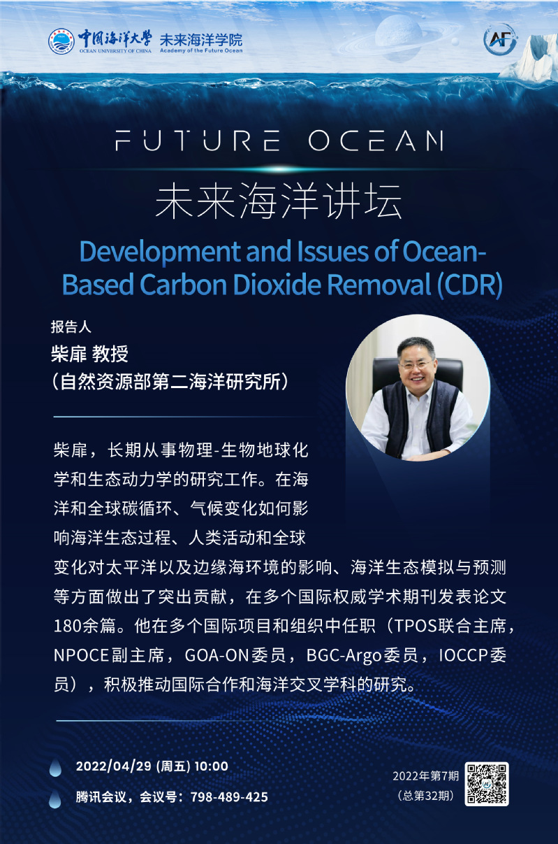 未来海洋讲坛第32讲(2022年第7期)-柴扉:Development and Issues of Ocean-Based Carbon Dioxide Removal (CDR)