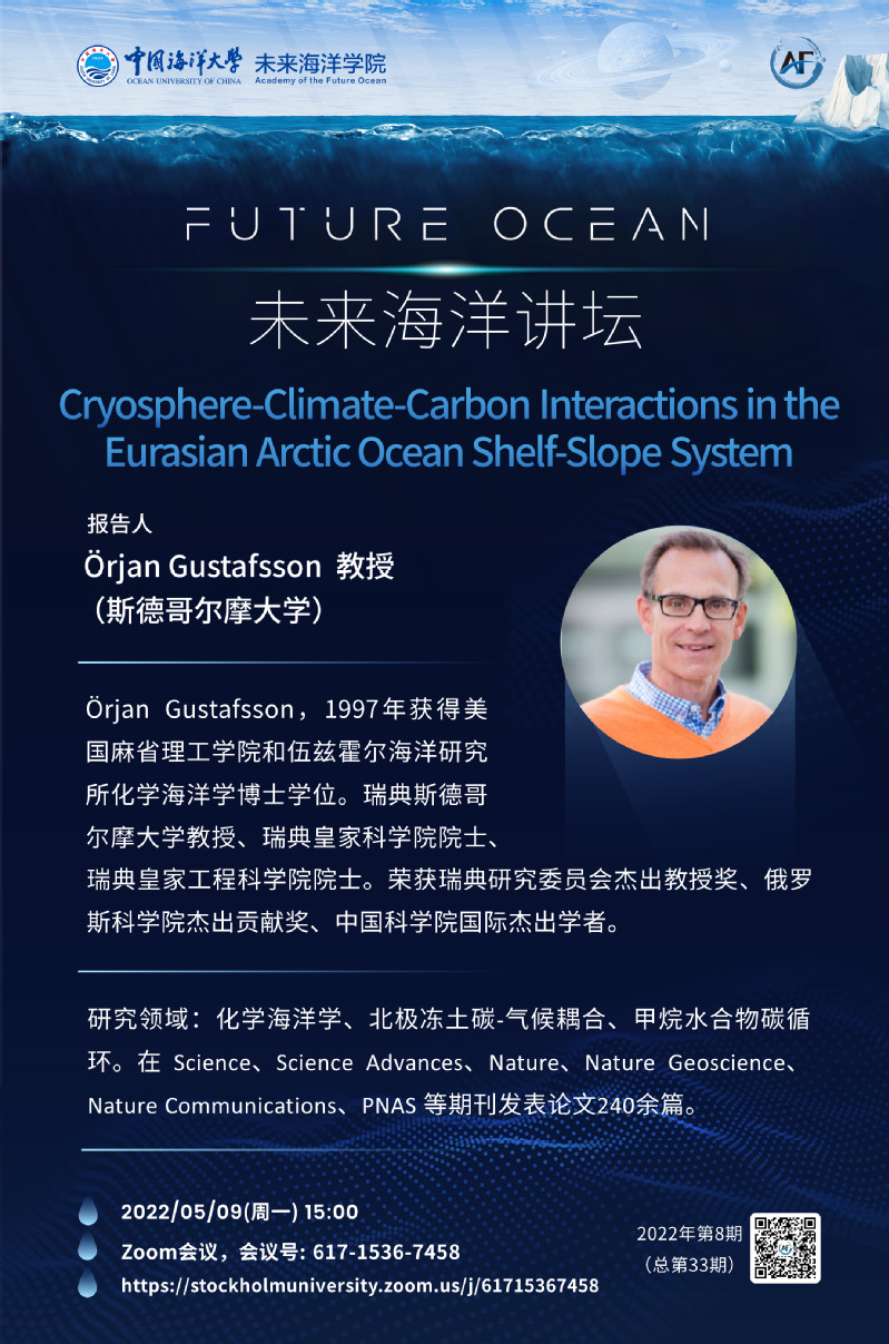 未来海洋讲坛第33讲(2022年第8期)-Örjan Gustafsson:Cryosphere-Climate-Carbon Interactions in the Eurasian Arctic Ocean Shelf-Slope System