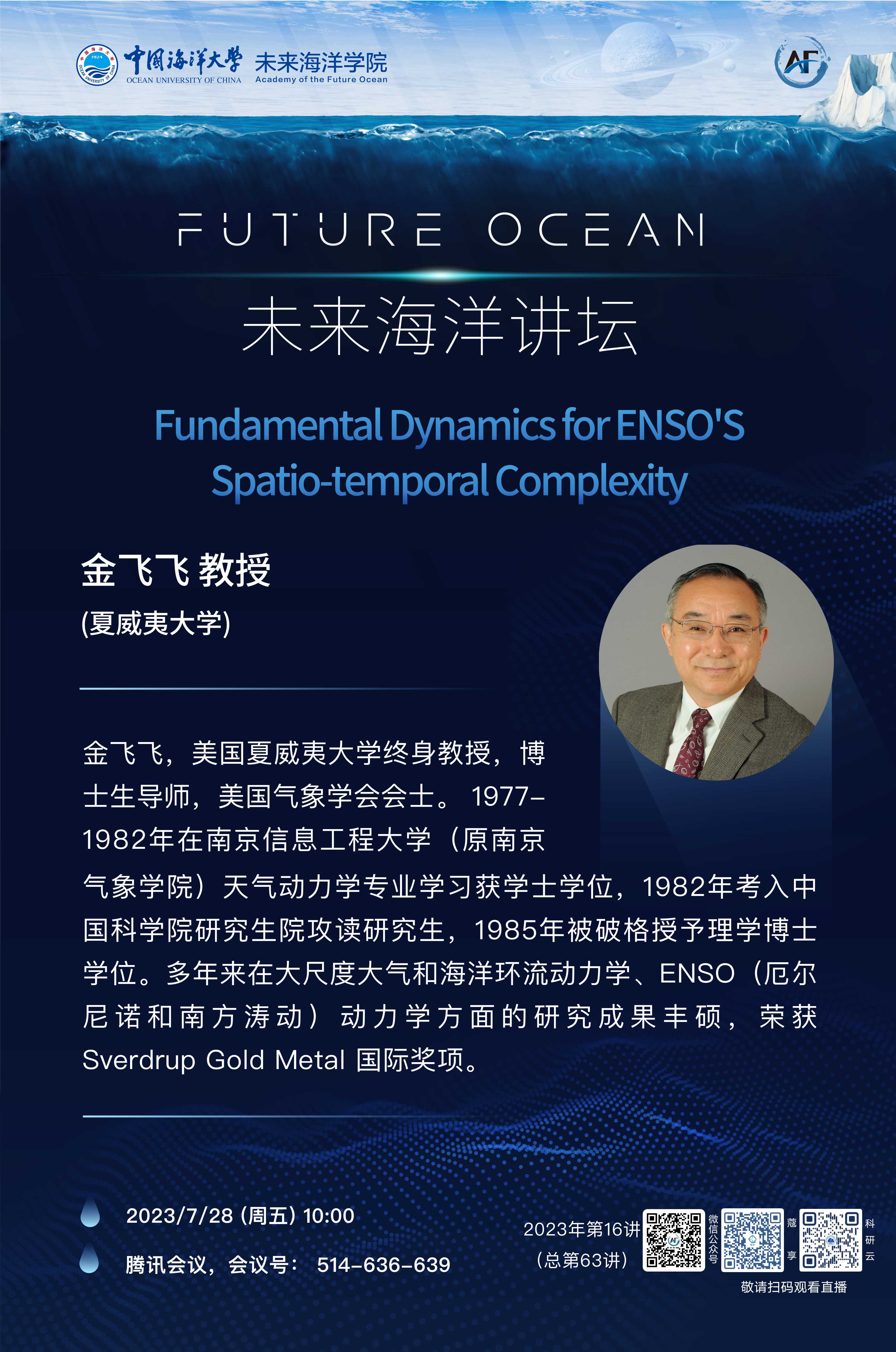 未来海洋讲坛第63讲(2023年第16讲)-金飞飞:Fundamental Dynamics for ENSO'S Spatio-temporal Complexity
