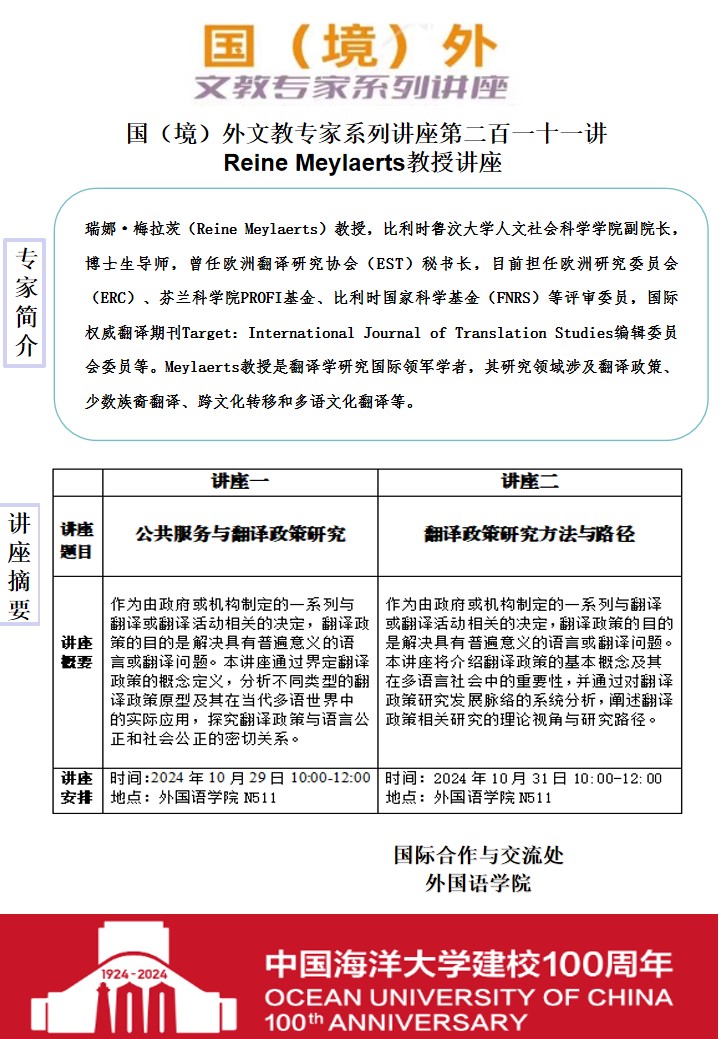 国(境)外文教专家系列讲座第二百一十一讲-Reine Meylaerts系列讲座