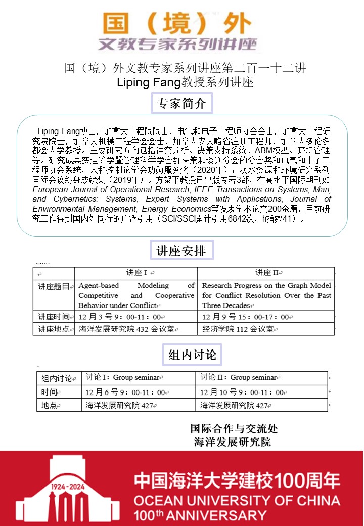 国(境)外文教专家系列讲座第二百一十二讲-Liping Fang教授系列讲座