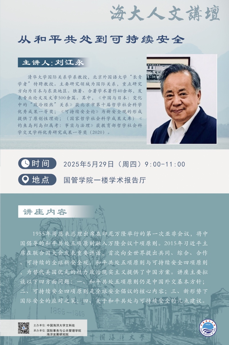 海大人文讲坛2025年第39讲-刘江永:从和平共处到可持续安全
