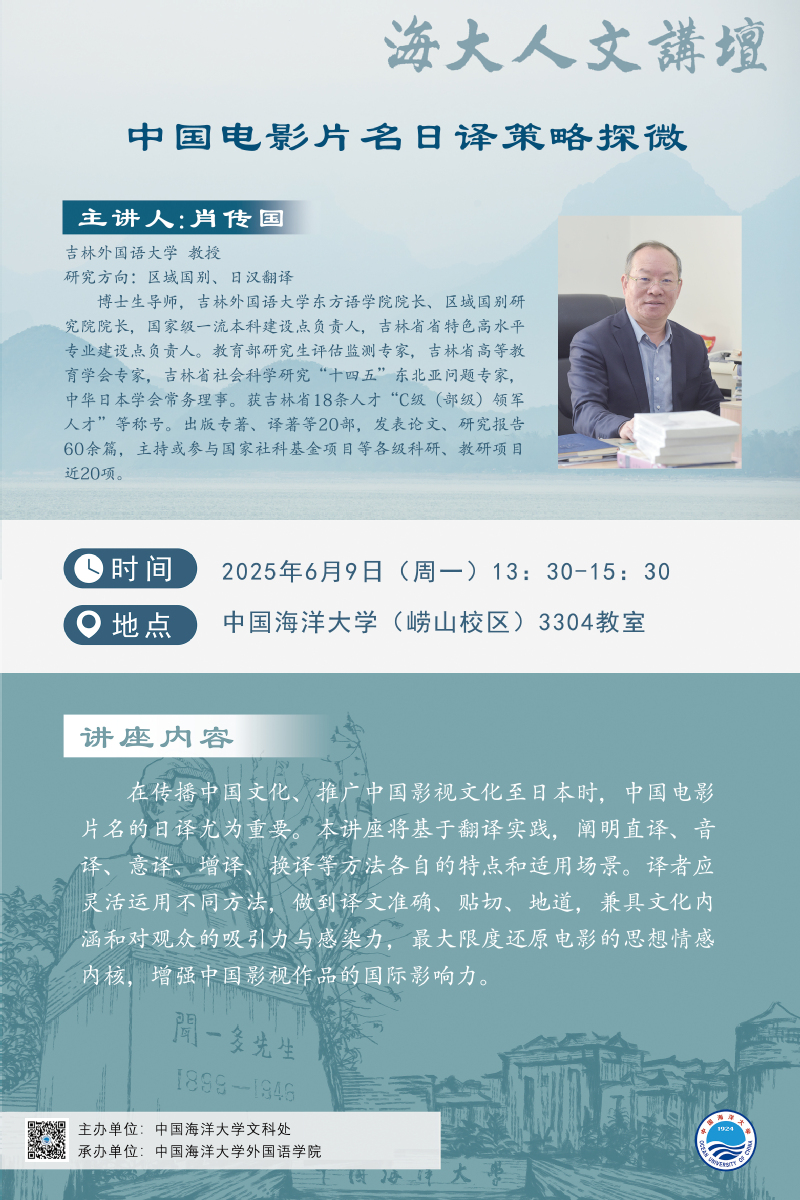 海大人文讲坛2025年第47讲-肖传国:中国电影片名日译策略探微