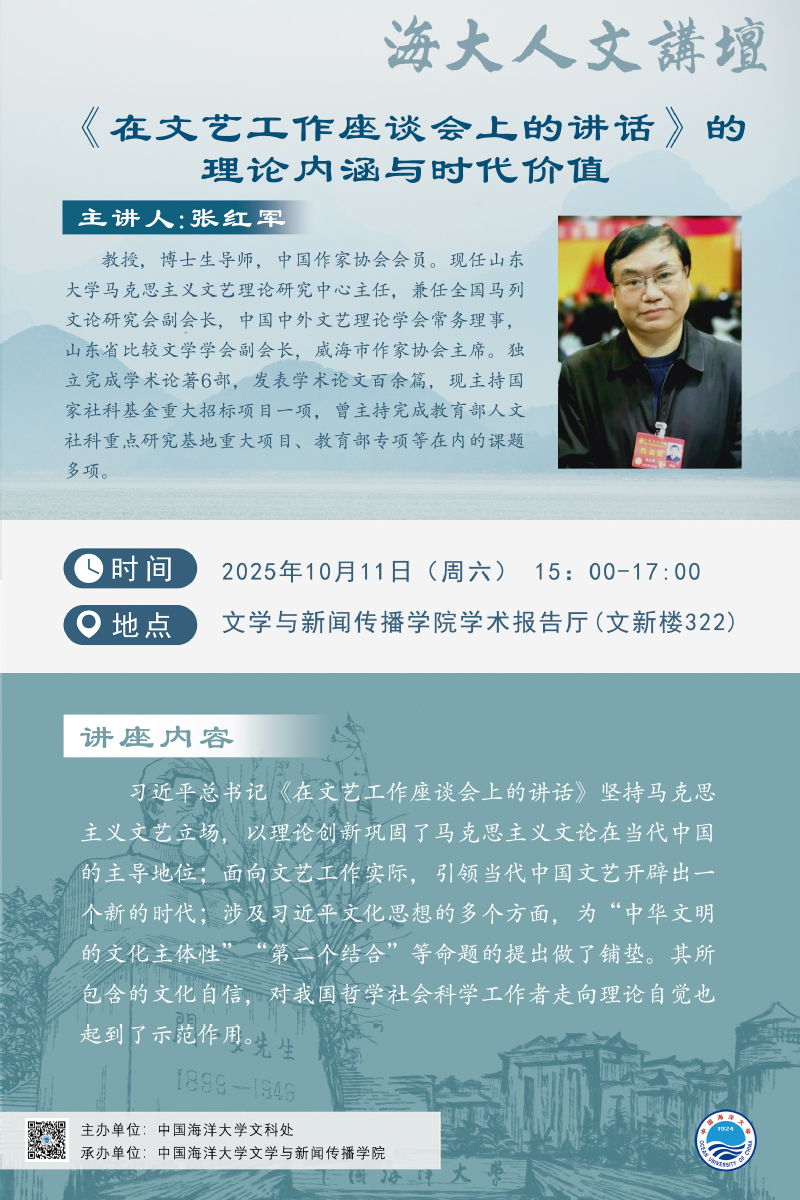 海大人文讲坛2025年第67讲-张红军:《在文艺工作座谈会上的讲话》的理论内涵与时代价值