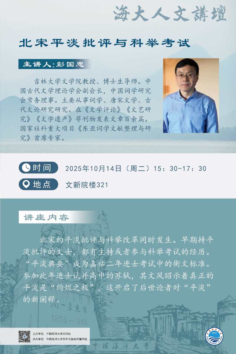 海大人文讲坛2025年第69讲-彭国忠:北宋平淡批评与科举考试
