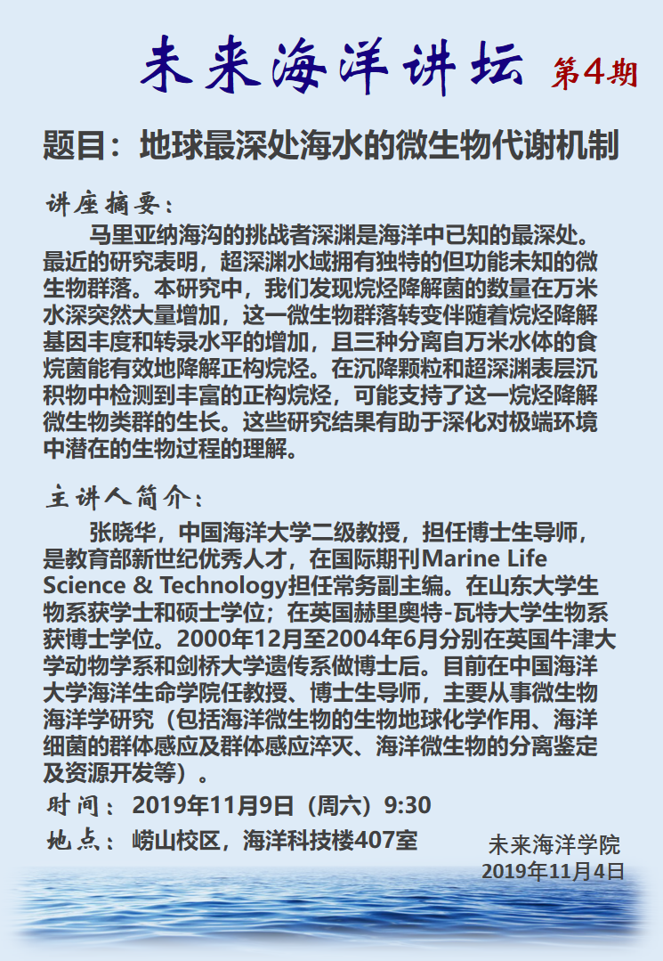 未来海洋讲坛第四期-张晓华教授:地球最深处海水的微生物代谢机制