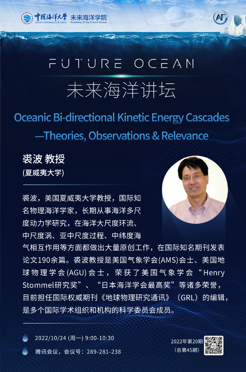 未来海洋讲坛第四十五期-裘波:Oceanic Bi-directional Kinetic Energy Cascades —Theories, Observations & Relevance