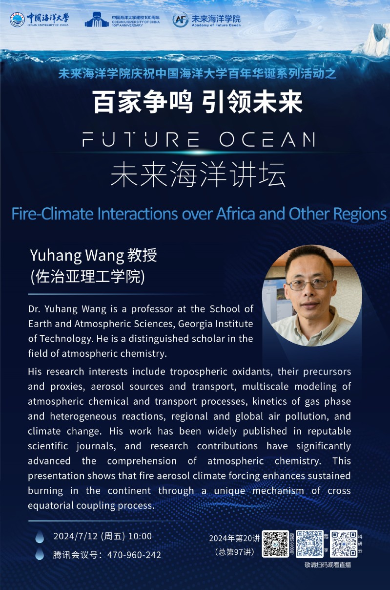 百家争鸣 引领未来 | 未来海洋讲坛第九十七讲 -Yuhang Wang: Fire-Climate Interactions over Africa and Other Regions