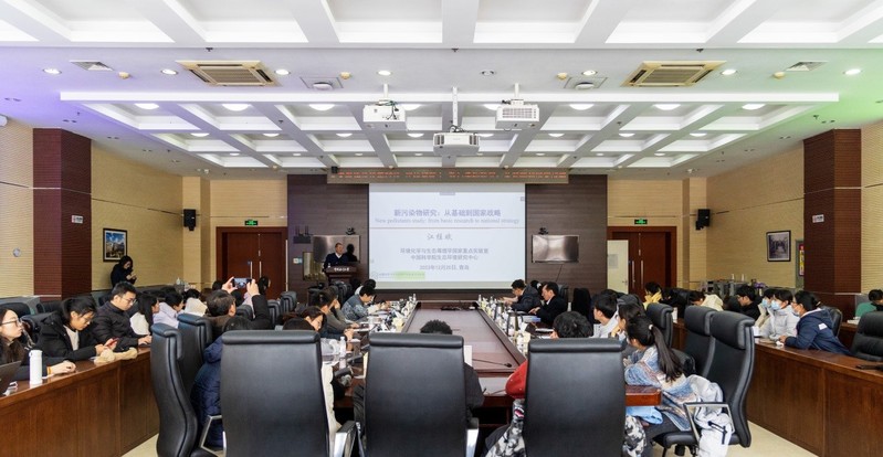 On December 20th, at the invitation of Prof. Li Jianping, Dean of the Academy of Future Ocean, and Prof. Li Yanbin from the key laboratory of marine chemistry and engineering, Prof. Jiang Guibin, an academician of the Chinese Academy of Sciences (CAS), The World Academy of Sciences, and a researcher at KMS of Research Center for Eco-Environmental Sciences, CAS, gave an academic lecture entitled: "New Research on Pollutants: From Fundamentals to National Strategy" at Future Ocean Forum. The lecture was chaired by Prof. Li Jianping, Dean of the AFO, and over 25,000 listeners, including students from the AFO, participated in the event.