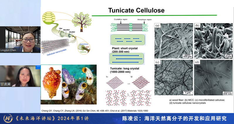 On January 30th, Prof. Chen Lingyun from the University of Alberta in Canada was invited as a guest speaker for Future Ocean Forum by Prof. Li Jianping, the Dean of the Academy of Future Ocean, and by Prof. Li Fengmin, a member of the Cross-cultivation Steering Committee and the Vice Dean of the College of Environmental Science and Engineering. Prof. Chen delivered an academic lecture titled "Research in Development and Application of Marine Natural Polymers". The lecture was co-hosted by Gan Bolan and Ma Kun, Vice Deans of the Academy of Future Ocean, and was attended by over 17,000 participants both online and offline, including students from the AFO.