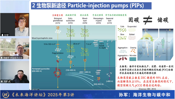 On February 10, at the joint invitation of Prof. Li Jianping, Dean of the Academy of Future Ocean, and Prof. Zhou Chun, a Ph.D. supervisor of the Academy of Future Ocean, Prof. Sun Jun, Changjiang Scholar Distinguished Professor (Ministry of Education) from China University of Geosciences (CUG) delivered an academic lecture titled “Marine Organisms and Carbon Neutrality” at Future Ocean Forum. The lecture was jointly hosted by Dean Li and Prof. Zhou Chun, and was attended by over 19,000 participants, including students from the AFO.