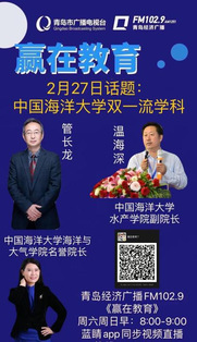 2022年2月27日上午,开云电竞网址招生办公室,邀请水产学院副院长、海水养殖教育部重点实验室温海深教授出席青岛经济广播《赢在教育》栏目,他立足国家双一流学科,针对水产类专业的本科教育工作接受了采访。