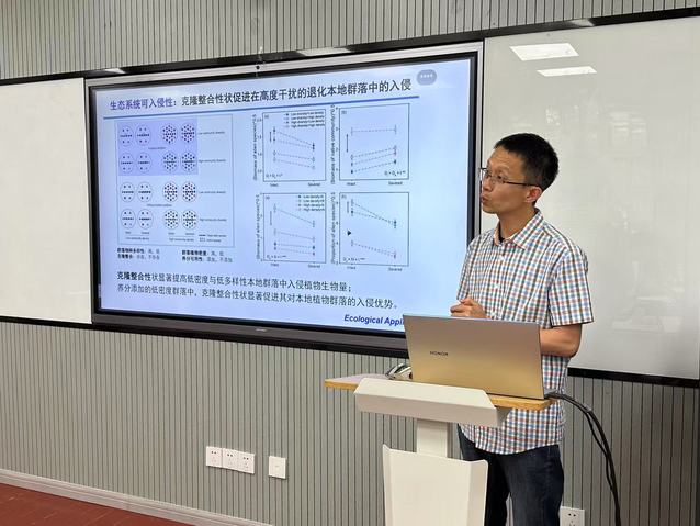 王永健教授首先以植物入侵为例,解析植物功能性状对入侵性的贡献,并探究其对系统多功能性的调控作用;其次期望从不同动植物类群,揭示功能性状介导物种互作的关联,探索功能性状在入侵物种扩散及预测的作用,以期能为功能性状与生物入侵关系提供新思路和重要实验证据。