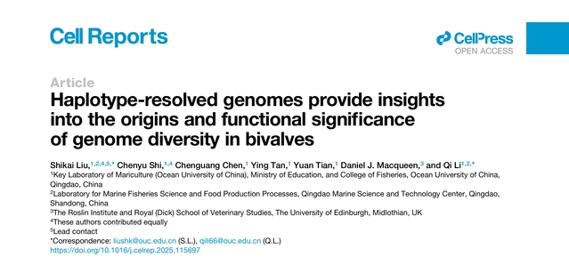 近日,海水养殖教育部重点实验室(以下简称实验室)贝类遗传育种团队的李琪教授、刘士凯教授联合英国爱丁堡大学在双壳贝类基因组多样性研究领域取得重要进展。相关成果以“Haplotype-resolved genomes provide insights into the origins and functional significance of genome diversity in bivalves(单倍型解析基因组揭示双壳贝类基因组多样性的起源与功能意义)”为题,在 Cell Reports期刊上在线发表。