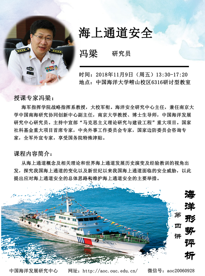 《海洋形势评析》课程自开课以来,好评如潮,关注度不断上升,诸多海大老师和很多未能成功选课的同学都慕名前来听课,每次上课教室里都座无虚席。据悉,下一次的课程将由来自海军指挥学院战略指挥系的海军大校冯梁教授为师生们带来题为《海上通道安全》的专题授课,欢迎广大师生前来听课。