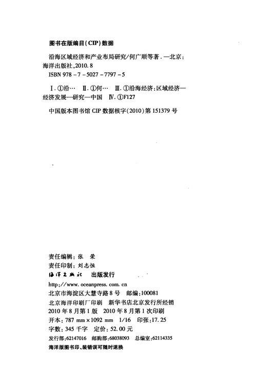 何广顺,王晓慧等:《沿海区域经济和产业布局研究》