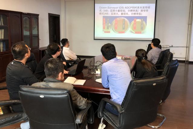 首先,魏洳海同志汇报了此次技术培训的主要内容及学习心得。此次学习的主要内容为ADCP概述、Sentinel V介绍、ADCP锚系应用、ADCP安装、VMDAS软件设置、LADCP应用和ADCP数据等,魏洳海同志表示通过此次培训学习有很大收获,进一步系统的梳理了关于ADCP原理等相关知识,解决了之前在日常使用中遇到的各种问题,例如:安装偏差的校正以及WHADCP为何需要输入配置文件,而无法在用户输入界面设置参数等问题,对自身业务技能提升有显著的促进作用。听完魏洳海的汇报后,大家围绕相关问题展开了充分讨论和交流。