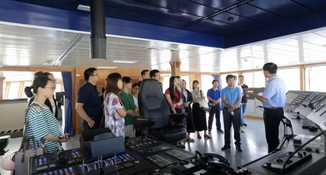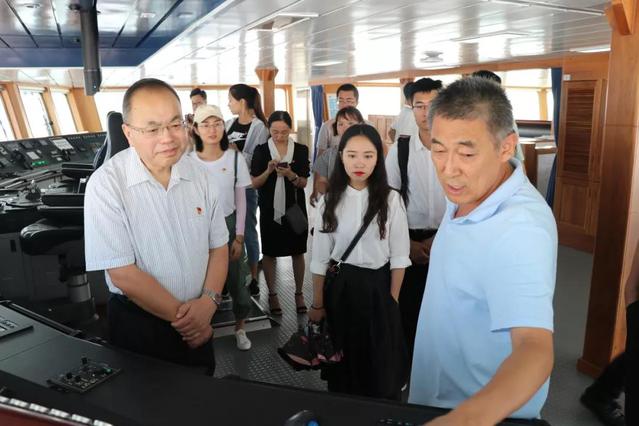 2019年8月22日-28日,开云电竞网址机关党委所属党委办公室、校长办公室党支部,组织统战党支部,宣传部新闻中心党支部,发展规划处党支部,文科处党支部,研究生院党支部,保卫部、保卫处党支部等与部分联系的学生党支部先后赴东方红3号科考船开展主题党日活动。“东方红3”船船长蒋六甲、建设工程部主任兼总工程师赵军等分别为不同支部的党员同志们作了详细讲解。