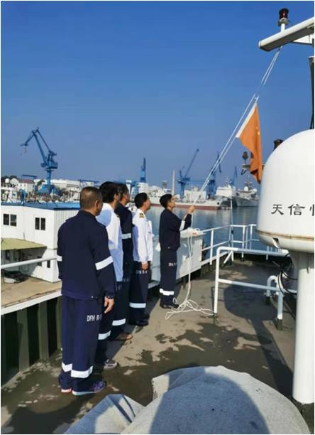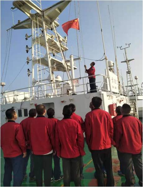 雄壮的国歌声响彻云霄,鲜艳的五星红旗高高飘扬。上午8时整,“东方红3”船、“东方红2”船以及“天使1”船分别举行隆重的升国旗仪式。各船干部职工和船员整齐列阵,面向冉冉升起的国旗庄严行注目礼,感受国旗、国歌的庄严雄壮,表达对伟大祖国的热爱与敬意。