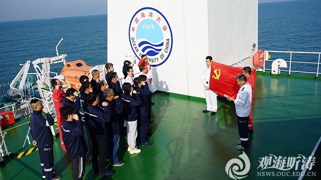 “东方红3”船党员同志在甲板上重温入党誓词