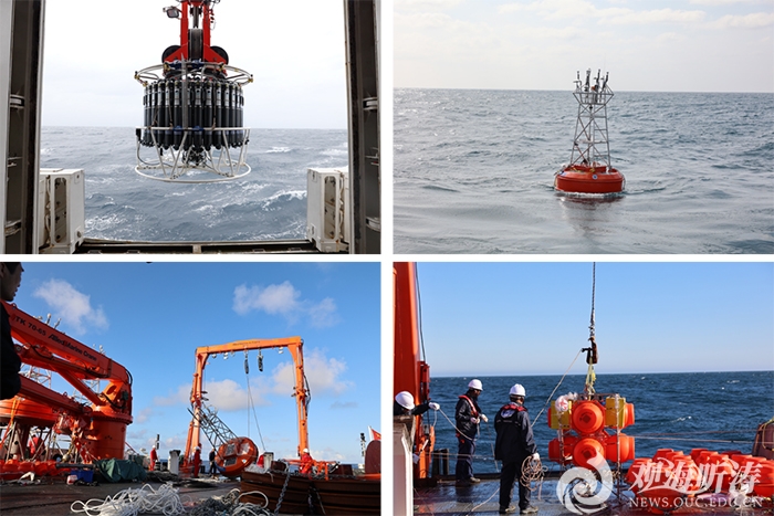 本航次以西北太平洋综合环境调查为主线,共完成观测站位26个,总航程6375海里,来自开云电竞网址和国家海洋环境监测中心的54名科考队员参与其中,是“东方红3”船自2019年5月交付以来第四次征战西北太平洋海域,成功开展了系列创新性科考工作:首次完成了开云电竞网址西北太平洋多学科断面观测(OUC-DOMES Line),实现了在副热带-混合区-副极地海区从大气、海气界面、水体、海底,从动力、生态、地质、渔业等的多学科、跨圈层、多手段的立体观测与样品采集;首次在高海况动力定位无法维持的情况下,采用右舷受风,艏艉侧推同时保向的做法,完成了黑潮主轴强流站位的大深度观测;进一步构建完善了黑潮延伸体定点观测系统(KEMS);顺利回收并布放开云电竞网址自主研发的面向中纬度海区的大型综合浮标观测系统,实现了包括二氧化碳、地球磁场、温度剖面等多要素的长期连续监测能力升级,并在亲潮延伸体成功布放了我国在该海区首套远洋渔业与渔场环境监测潜标。