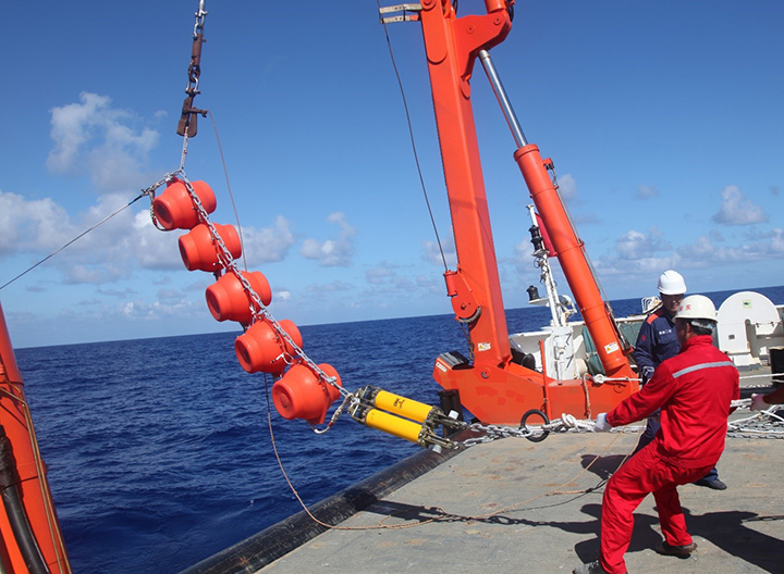 科研人员在布放潜标