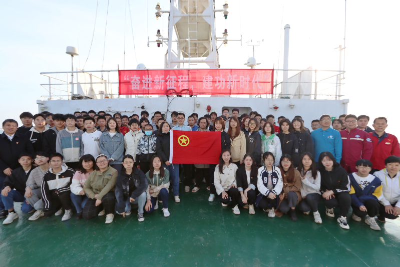 本站讯 黄海之滨,唱响百年辉煌历史,感悟踔厉奋发精神。5月9日,为迎接党的二十大胜利召开,庆祝中国共产主义青年团成立100周年,海洋地球科学学院2019级实习队全体师生在“东方红2”科考船上开展了以“奋进新征程,建功新时代”为主题的主题团日。