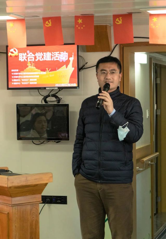 2023年2月26日下午,船舶中心“东方红2”船党支部、“东方红3”船党支部、环境科学与工程学院实验室管理中心党支部和本科生党支部联合开展了“浩海扬帆强国志,学海筑梦青年行”主题党日活动。船舶中心“东方红2”和“东方红3”船工作人员不辞辛劳,利用周末时间为环境科学与工程学院的师生讲解了 “东方红”系列科考船背后的动人故事。