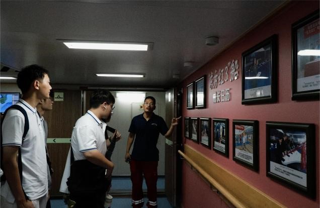 介绍“东方红3”船基本情况,参观功能区