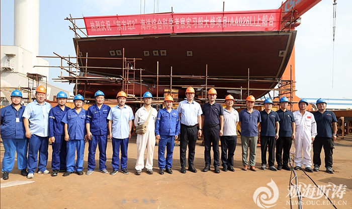 本站讯 9月10日,“东方红2”海洋综合科学考察实习船大修项目(以下简称“东方红2”船)在武昌船舶重工集团有限公司(以下简称武昌造船)双柳厂区顺利实现了上船台生产节点。副校长王厚杰在武昌造船副总经理田军的陪同下,参加了上船台节点仪式,考察了“东方红2”船大修改造生产现场并就后续工作进行研讨座谈。