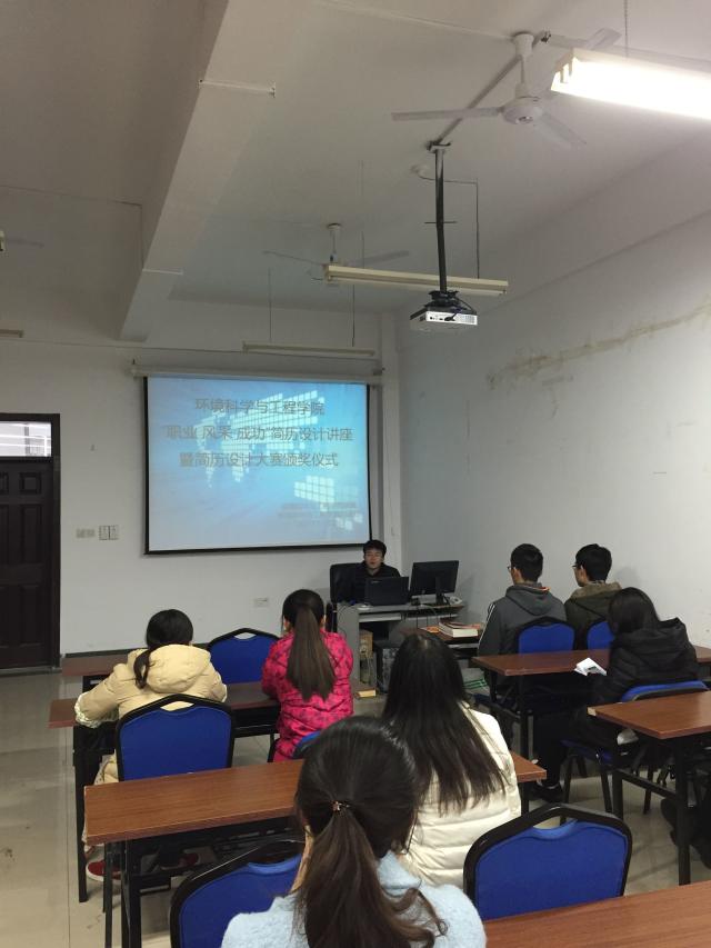 本站讯 为更好地在毕业生和在校生中开展就业择业引导活动,培养和提高大学生职业素质和就业能力,11月26日下午,由环境科学与工程学院团委主办,院自强社承办的简历设计讲座暨简历设计大赛颁奖仪在学院会议室顺利举行。出席本次讲座的嘉宾有环境科学与工程学院辅导员西国庚,院研究会会长马路宽和院自强社社长张翀岳。