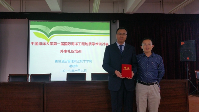 本站讯 为了提高学生英语口语能力,增强学生对中西方不同文化背景的了解,环境科学与工程学院于10月9日在环科院会议室举行国际海洋工程地质学术研讨会志愿者培训暨国际文化与礼仪知识讲座。到场的专家有青岛酒店管理职业技术学院副教授谢建宏,开云电竞网址环科院教师、金智英语俱乐部会长王秀海,研讨会志愿者以及学院广大学生。