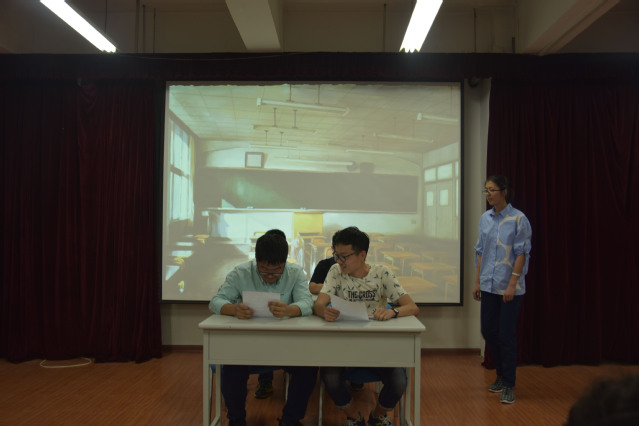 随后上演的就是同学们自导自演的心理小短剧。首先展现在大家眼前的《警察与赞美诗》和《超级侦探》以出人意料的剧情与反串的角色,吸引了观众的眼球,诙谐幽默的台词更是引来阵阵笑声。而之后上台的第三组的心理剧《我的天空》在带来欢笑的同时,也引发了同学们对于自力更生、坚持本心的思考。