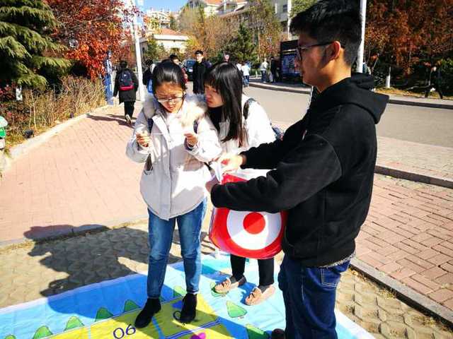 一直以来,环科院致力于打造一个文明洁净的环保校园,因此活动围绕环保新知的主题,将体育游戏与环保答题相结合,精心策划了一项类似真人大富翁的有关环保和公益的积分制体育活动。活动现场布置了大型喷绘棋盘和骰子,参与的同学将通过掷骰子的方式决定在棋盘中向前走的步数并在到达相应棋盘格时回答问题,每回答对一个专业问题积两分,每个非专业问题积一分,最后达到一定积分的参与者可以进行抽奖,为了增加体验感,在棋盘的每个不同区域设有相应的积分奖励与惩罚制。