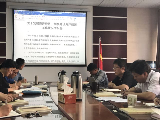 江文胜带领党员学习《关于发展海洋经济 加快建设海洋强国工作情况的报告》、《山东省海洋强国建设行动方案》、《青岛市新旧动能转换“海洋攻势”作战方案(2019-2020年)》等文件材料,配合《空天报国,敢为人先,建设扎根中国大地的世界一流大学》的PPT讲解了北京航空航天大学的建设发展情况。