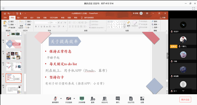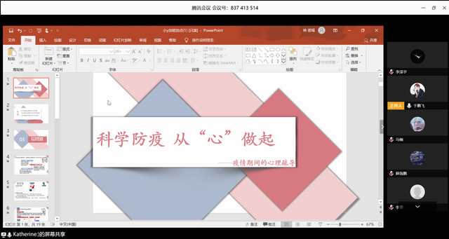 接着,为预防同学们在这次疫情中可能产生的心理问题,心理委员向我们科普了关于疫情直接导致的不良情绪,之后分析了疫情隔离在家同学们可能产生的孤独感及自控力差在家中学习效率低下的问题,并针对这三个问题提出了解决措施,在一定程度上能缓解同学们的心理压力。