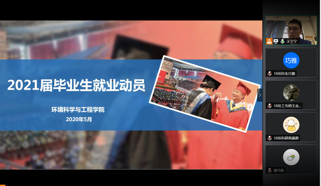 本站讯 为提高环境科学与工程学院2021届毕业生的就业积极性,学院于5月14日下午通过线上指导的方式,举行了2021届毕业生就业动员大会。本次会议邀请了两位2000级环境科学专业优秀校友。动员大会由学院辅导员王宁宁主持,学院2021届全体毕业生参加会议。