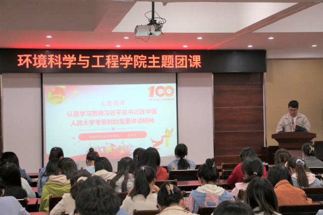 本站讯正值中国共产主义青年团成立100周年之际,为扎实推进团员教育,提高团员思想理论水平和政治素质,引导团员青年弘扬时代精神和民族精神,厚植爱国主义情感,2022年5月11日晚,环境科学与工程学院组织开展主题团课学习活动。本次团课由团委书记王宁宁主讲,环科院2021年度新发展团员、优秀团员代表、2020级本科生以及各班团支书参加学习活动。