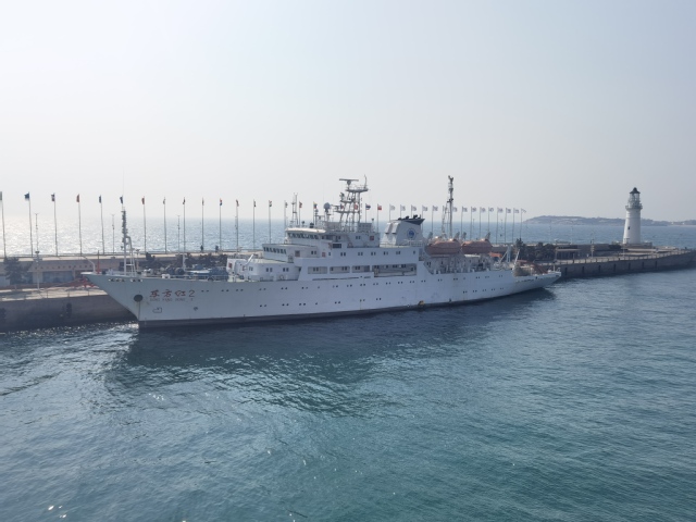 环科院师生首先登上“东方红2”海洋综合调查船,实地参观了这艘在役近30年、即将前往武汉进行大修升级改造的“英雄”船。该船自1996年正式投入以来,航迹遍布渤海、黄海、东海、南海和西北太平洋海域,承担了学校9个学院、18个涉海专业、每年600余人的海洋学海上实践教学任务,同时承担了国家基础研究发展规划(973)项目、国家高技术发展计划(863)项目、国家自然科学重大基金项目等众多国家级重大研究课题的综合性海上航次任务,为我国高层次海洋科研人才的培养做出了卓越贡献。