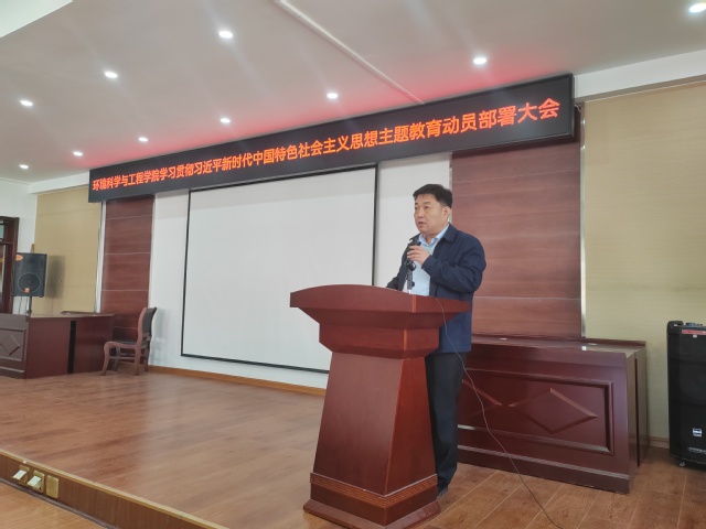 环境科学与工程学院学习贯彻习近平新时代中国特色社会主义思想主题教育动员部署大会4月27日下午召开。学院党委书记陈文收对深入开展主题教育做了全面动员部署。党委副书记刘慧主持会议。