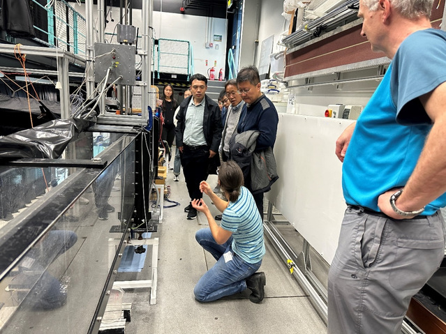 Thorsten Stoesser教授代表英方对江院长一行来访表示热烈欢迎,介绍了英国伦敦大学学院的校园布局、历史沿革以及运行方式。据介绍,英国伦敦大学学院建于1826年,是英格兰继牛津大学、剑桥大学后成立的第三所大学,与剑桥、牛津、帝国理工、伦敦政治经济学院并称“G5超级精英大学”,被公认为是当今世界最顶尖的高等教育机构之一。在Eugeny Buldakov副教授带领下,江院长一行参观了英国伦敦大学学院工程流体中心实验室,对实验室的风浪流水槽设施以及正在开展的流体力学试验进行了详细介绍。