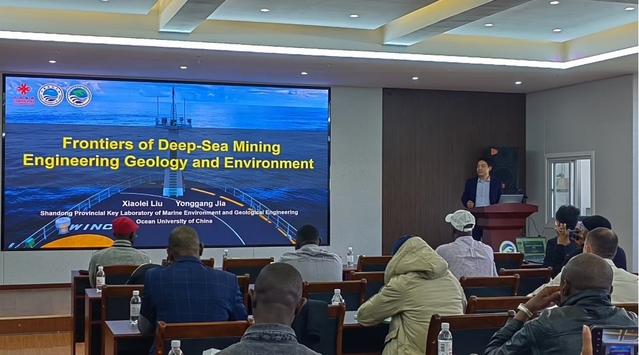 刘晓磊教授对学校和学院情况做了简要介绍,并做题为“Frontiers in Engineering Geology and Environment of Deep-Sea Mining”的课程讲座、权永峥高级工程师代贾永刚教授做题为“In-situ monitoring technology for deep-sea mining”的课程讲座。两个讲座围绕海底资源与能源、海底资源开发的地质灾害与环境保护问题、海洋监测技术前沿开展,重点推介了研究团队围绕深海采矿环境保护、海洋地质灾害防控自主研发的系列海洋工程地质环境探测与监测技术装备。会后培训学员参观了山东省海洋环境地质工程重点实验室,对实验室相关仪器设备产生了浓厚的兴趣。