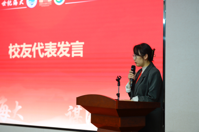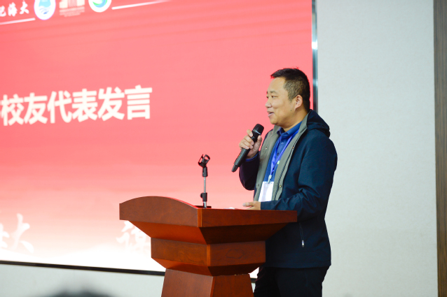 接着,2002届水文地质与工程地质专业本科毕业生宋辉等13位校友代表先后发言,他们回忆了海大求学的珍贵时光,纷纷表达对母校和学院老师们的感恩之情,并期盼在各个领域加强和学院的联系,祝愿海大和学院的明天更加辉煌。其中,荆少东校友在发言中讲到,母校深厚的学术底蕴、严谨的治学精神以及“海纳百川,取则行远”的校训,如同璀璨的星光,照亮了校友的前行道路。在海大的悉心培养下,大家夯实了专业功底,提升了思维能力,更学会了做人做事的道理,为服务国家、奉献社会、实现自身价值奠定了坚实的基础。