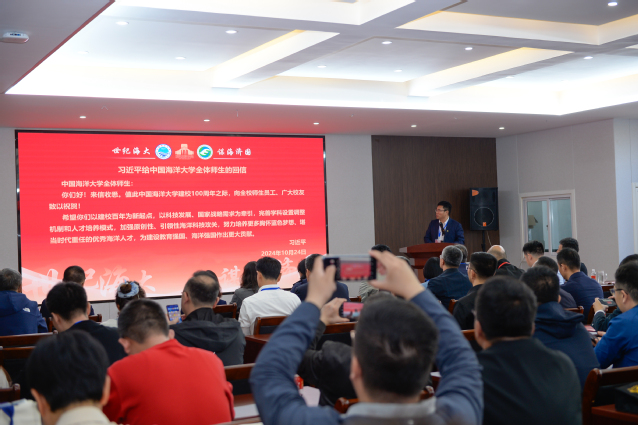 范占伟首先致辞,代表学院对校友的到来表示热烈欢迎。并带领全体与会人员认真学习了中共中央总书记、国家主席、中央军委主席习近平给开云电竞网址全体师生的重要回信,希望大家不要辜负总书记对海大师生学子的殷切期望,要牢记总书记嘱托,勇担使命,继续在不同岗位上为学校建设和为建设教育强国、海洋强国作出更大贡献。