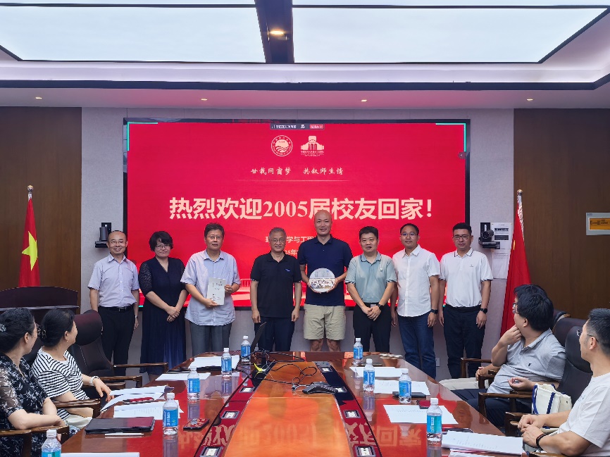2005届环境科学专业本科班、2005届环境工程专业本科班分别向学院捐赠纪念品,以此表达对母校培育的感恩之情,并祝愿母院未来发展更加辉煌。座谈会后,返校校友参观学院并合影留念。