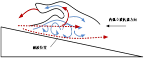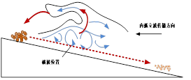 通过研究室内水槽中下凹型内孤立波对坡度9.1°陡坡的连续作用过程,监测内孤立波作用下坡面地形高程实验前后变化、悬浮物浓度变化及边界层变化过程,结合内孤立波的水文特性分析下凹型内孤立波作用下沉积物的运移过程以及沉积物斜坡坡面变化情况。研究发现:内孤立波持续作用下坡面沉积物的阶段性悬浮-运移-沉积形成浅水沙波地形,初次形成的沙波迎流面薄,背流面厚。内孤立波持续作用下沙波体以推移方式向深水区滑动,形成系列沙波地貌(图1)。砂土与粘土的悬浮-运移-沉积路径、方式不同。
