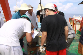 参加此次科考工作的实验室成员大多都是出海新兵,他们在贾永刚教授和单红仙教授的带领下利用一切机会与大海“亲密接触”,完成了大量的设备调试、样品采集和测试、现场数据分析等工作。这是一场前所未有的旅程,远征南海不仅积累了宝贵的现场考察经验,取得了丰富的一手科研资料,更是对海洋人开拓创新的一次激励。