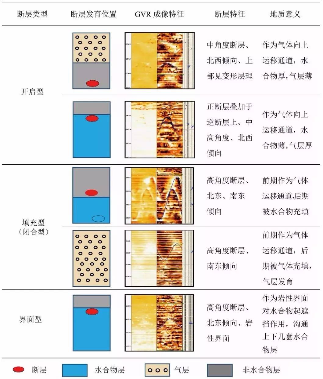 研究区水合物显示较好的井在GVR随钻成像上常发现有断层发育,主要有开启型、填充型和界面型3种类型。