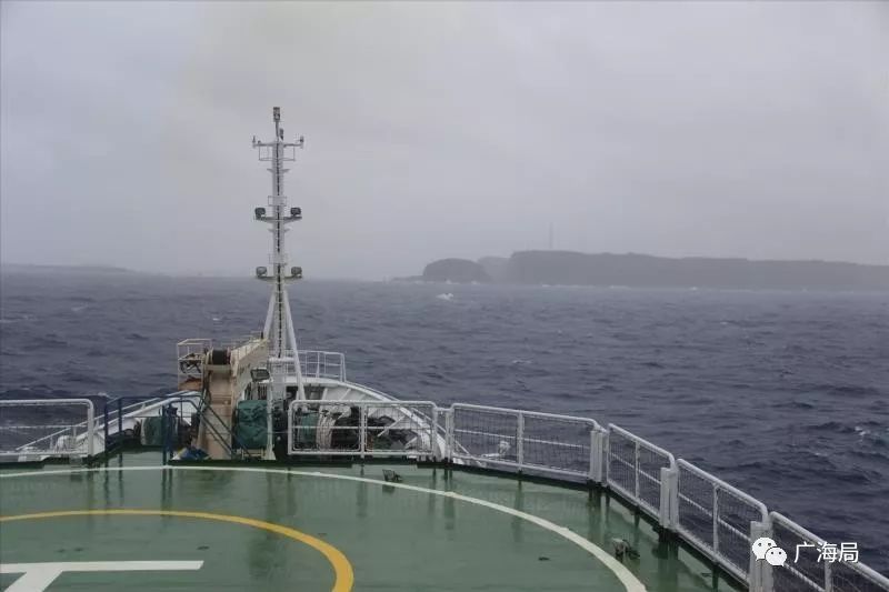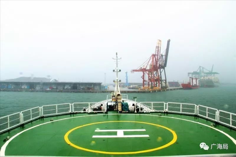“海洋六号”在暴风雨中驶进关岛港