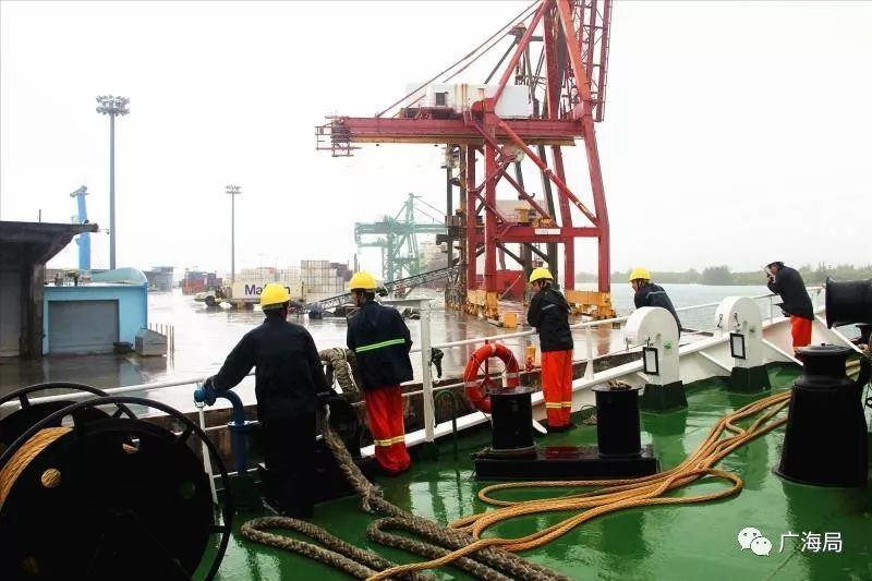 甲板人员雨中带缆